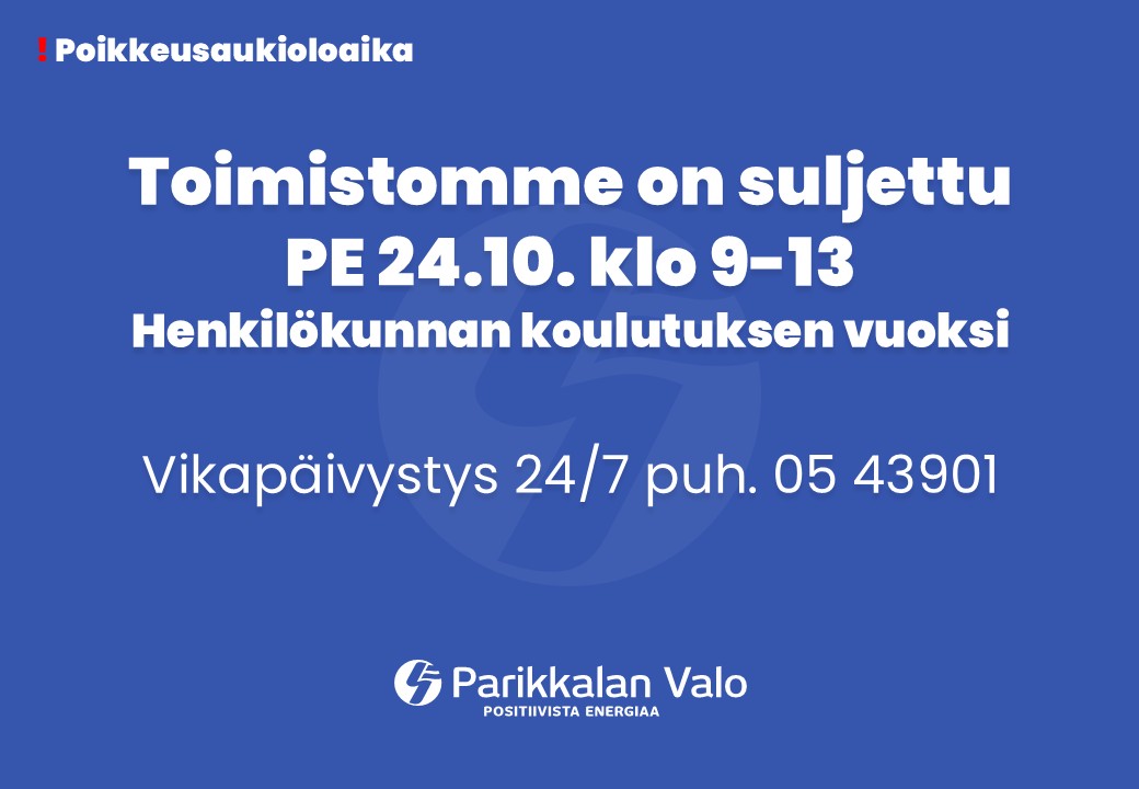 Toimistomme on suljettu PE 24.10. klo 9-13